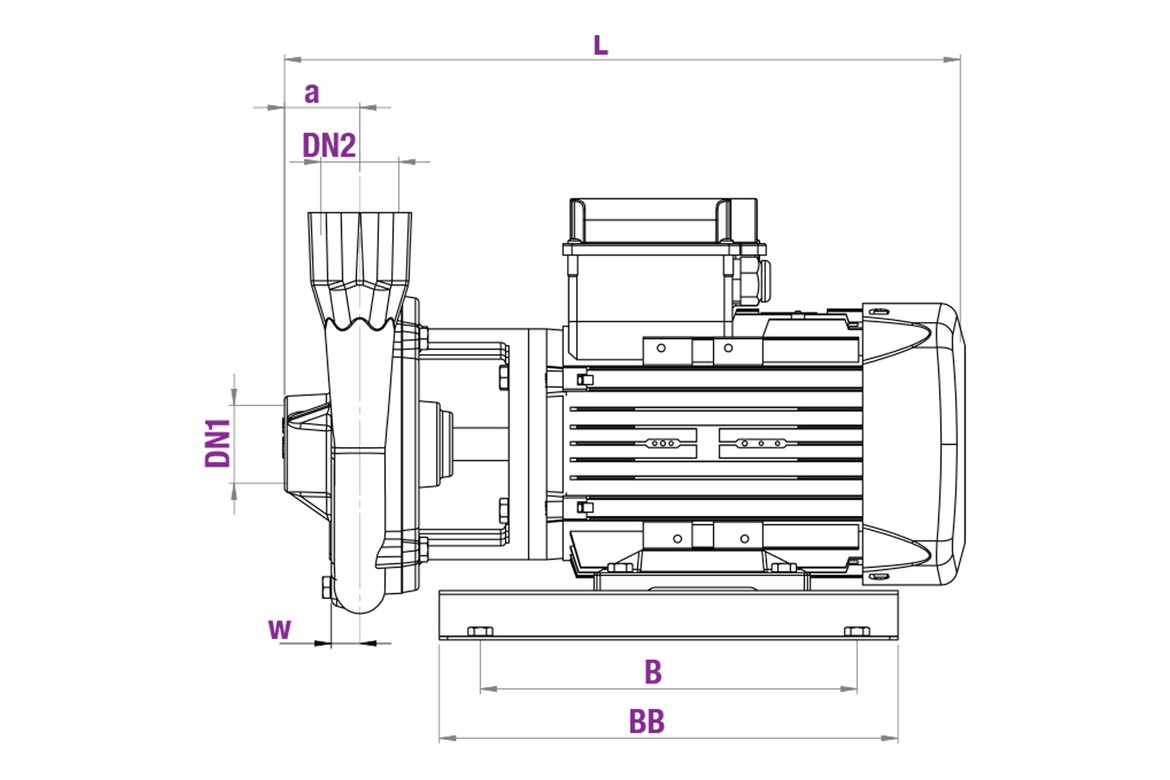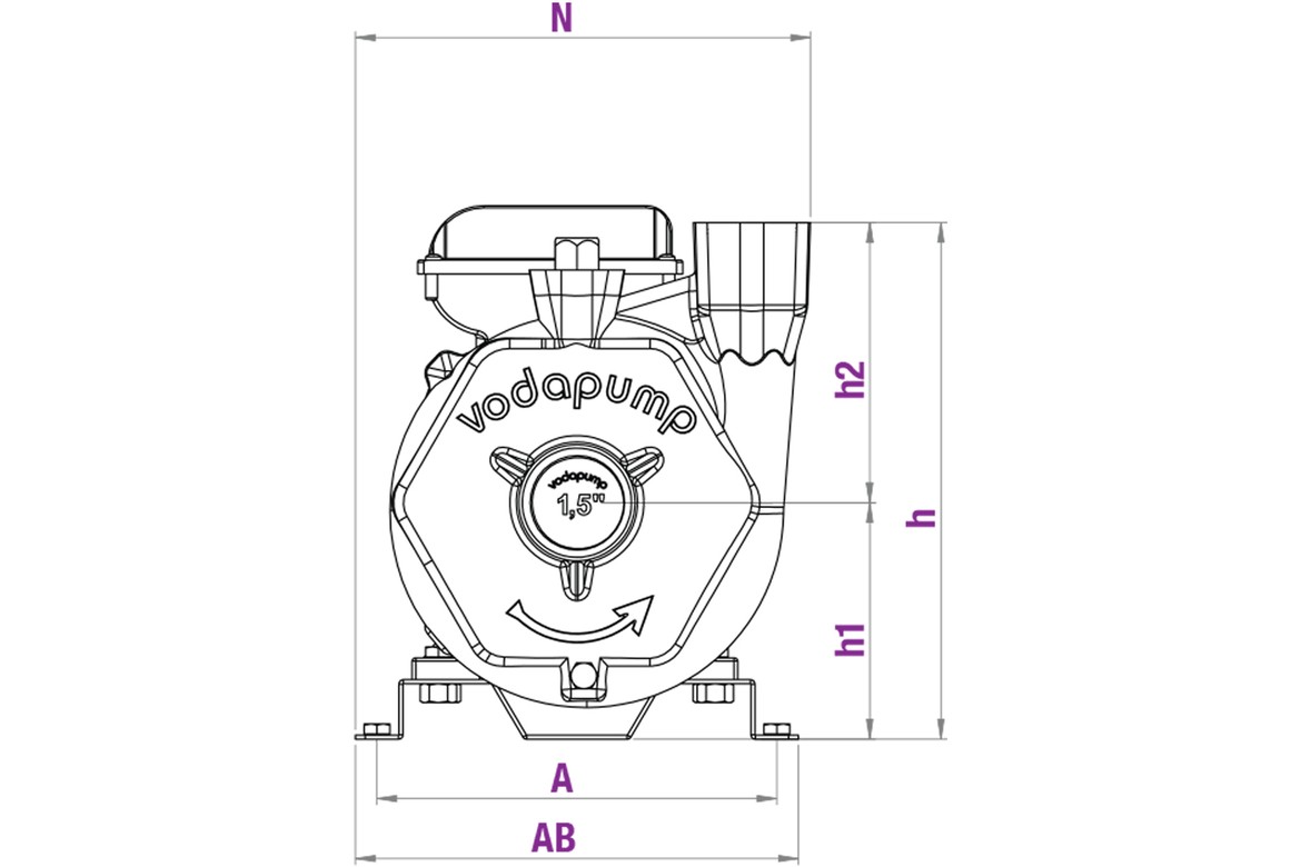 | Single-phase | Three-phase | Hp | Kw | Suction DN1 | Discharge DN2 | L | N | h1 | h2 | h | a | w | A | AB | B | BB | 1~ | 3~ |