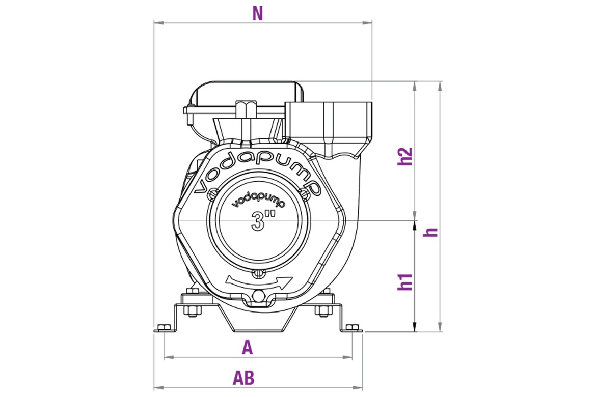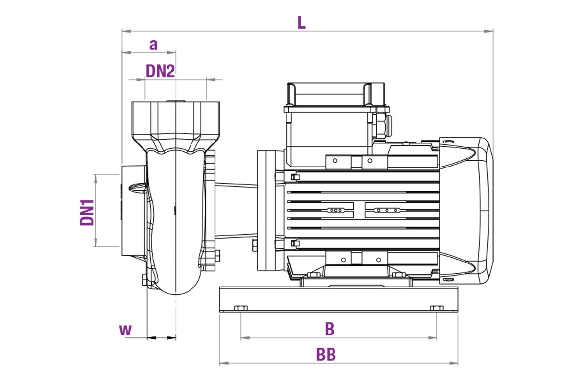 | Single-phase | Three-phase | Hp | Kw | Suction DN1 | Discharge DN2 | L | N | h1 | h2 | h | a | w | A | AB | B | BB | 1~ | 3~ |