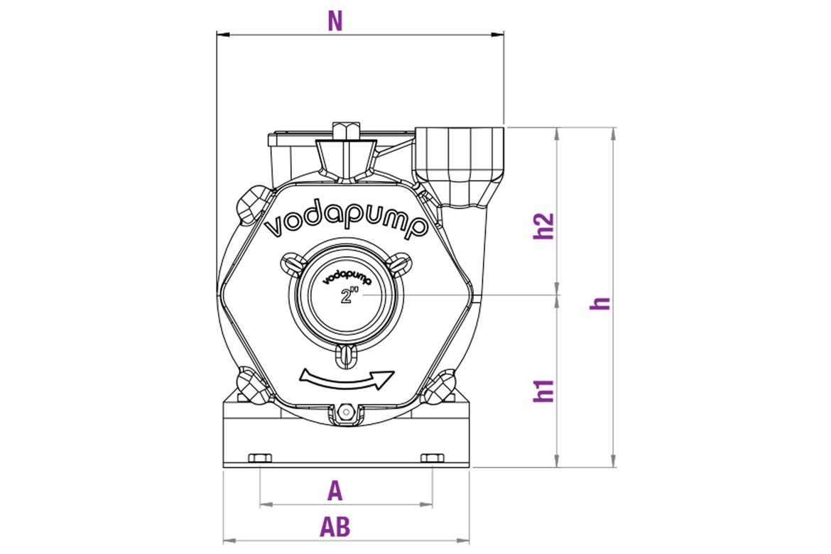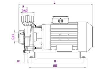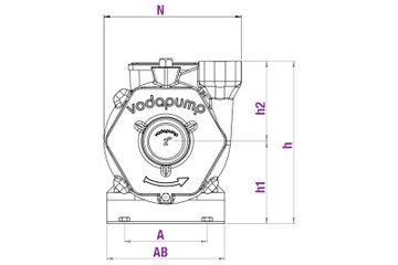 | Single-phase | Three-phase | Hp | Kw | Suction DN1 | Discharge DN2 | L | N | h1 | h2 | h | a | w | A | AB | B | BB | 1~ | 3~ |